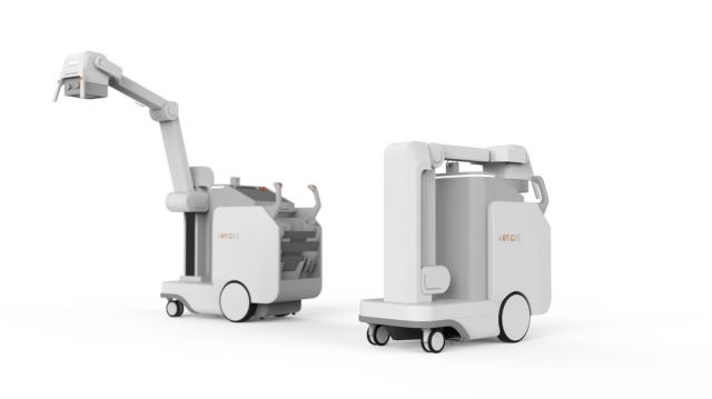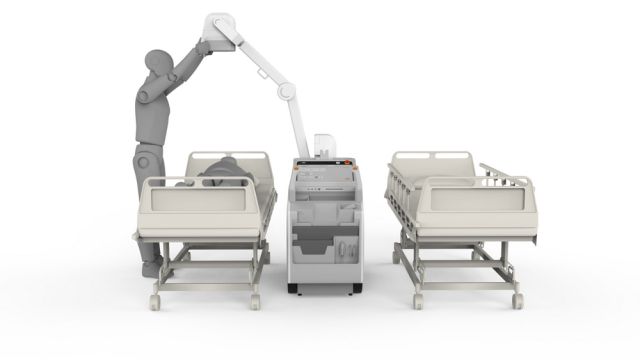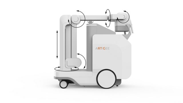 - Nový typ flexibilního ramene – je skladnější, tím se povedlo snížit celkové rozměry mobilního rentgenu a zajistit bezpečnější a snazší manipulaci během jeho převozu z místa na místo.
