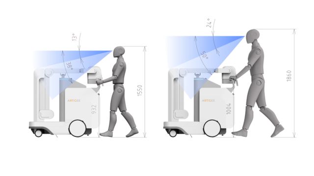 - Přístup k zadním kolům – do zadních kol se pod tíhou mobilního rentgenu čas od času namotá lepivá plachta, která se vyskytuje u vchodu do některých oddělení v nemocnici (kvůli minimalizaci šíření prachu/špíny). Díky přístupu k zadním kolům může obsluha mobilního rentgenu sama odstranit namotaný materiál a dál pokračovat v jeho používání bez nutnosti čekání na odborníka, který by musel v případě stávajících mobilních rentgenů odmontovat zadní kryt a namotaný materiál vyndat.