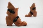 Tady bych Vás opravila, nejedná se tak úplně o lodičky. Těžko definovat, co je to vlastně za typ dámské obuvi, ale řekla bych, že víc než lodičkám se podobají kozačkám nebo kotníčkovým botám. Záměr byl spojit sportovní prvky jako typické lyžařské zapínání - přezky, dále robustnost, jež je pro "lyžáky" také charakteristická s prvkem dámských bot jako je podpatek, a to celé vyrobit a zpracovat stejně jako klasické boty. Tedy použít obuvní materiály jako kůži, spojování materiálu šitím, výztuže (které se běžně používají za účelem vyztužení paty a špičky). Výztuže byly u těchto bot použity k zachování tvaru celé boty tak, aby vznikl jakýsi skelet, podobně jako je to právě u lyžařských bot. Výsledným spojením tradičního přírodního materiálu jako je kůže a netradičního zapínání plastových přezek, které si spojujeme s užitím ve sportovním odvětví, nezvyklého tvaru, kde byla popřena tradiční představa podoby boty, vznikla právě ta unikátnost a netradičnost.