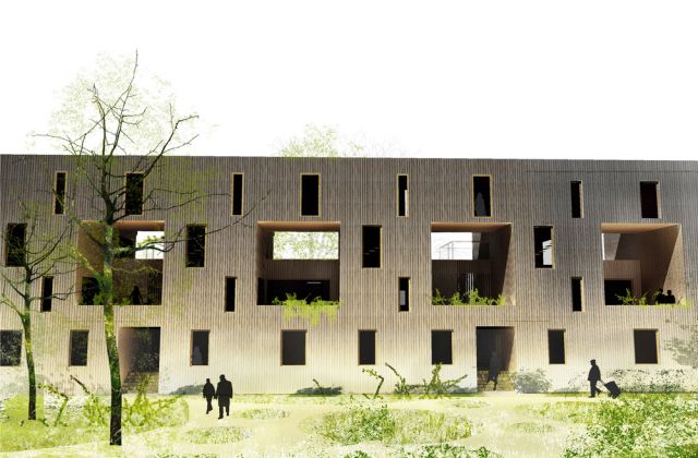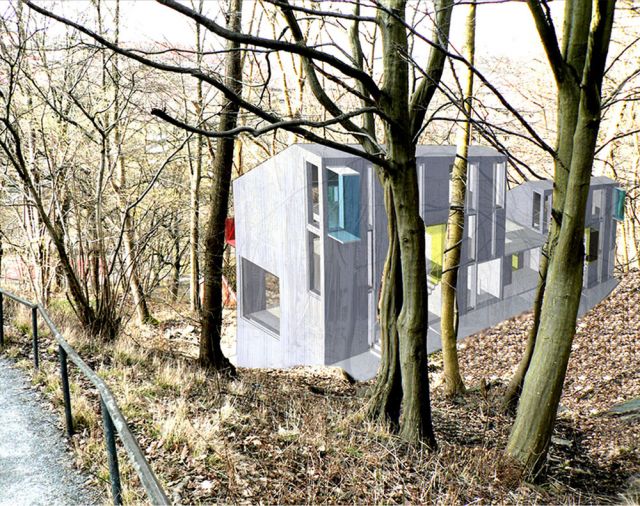Hodnocení poroty: Pokud se něco povede, tak se vším všudy. Petra Krobotová si vybrala zajímavé zadání, vzrušující lokalitu, v kontextu města zbytkovou a na něj navrhla adekvátní program, alternativní bydlení. V zalesněné strži nad městem stojí skupina dřevěných domů, které oscilují mezi chatou, vilovým domem a komunitním bydlením. Bydlení a domy reflektující přírodní rámec lokality, formou i materiály, mají dobře promyšlené vnitřní schéma, praktické a užitné půdorysy. Stejně dobře je osazena skladba celku z jednotlivých domů. Na podkladě pragmaticky vyřešených úkolů vyniká poetika domů. Mírně zdeformovaný tvar, náznak ledabylosti, zdánlivá nahodilost ve skladbě fasád i celé skupiny domů. Největším kladem celku je samozřejmost, kterou obydlel svah. Když se něco povede, nebývá to náhoda, ale hodně práce, která není vidět. Na zajímavou realistickou otázku byla nalezena adekvátní odpověď.