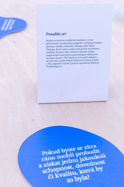 Institut blízkosti kromě vizuálního a emotivního zážitku nabízí také prostor k osobnímu sdílení. Návštěvníci se mohou posadit u velkého stolu v centru galerie a sblížit se díky 36 otázkám psychologa Arthura Arona, které začínají nenápadně a postupně přecházejí k hlubším tématům. Zájemci mají možnost také využít poradnu vedenou sociálními pracovníky a pracovnicemi, kde najdou podporu i prostor pro otevřený rozhovor o péči a vztazích.