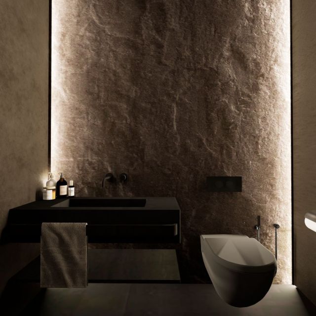 Obložením stěn surovým kamenem jsem chtěla evokovat prostředí jeskyně, které má podvědomě vyvolávat pocit bezpečí, klidu a úkrytu.